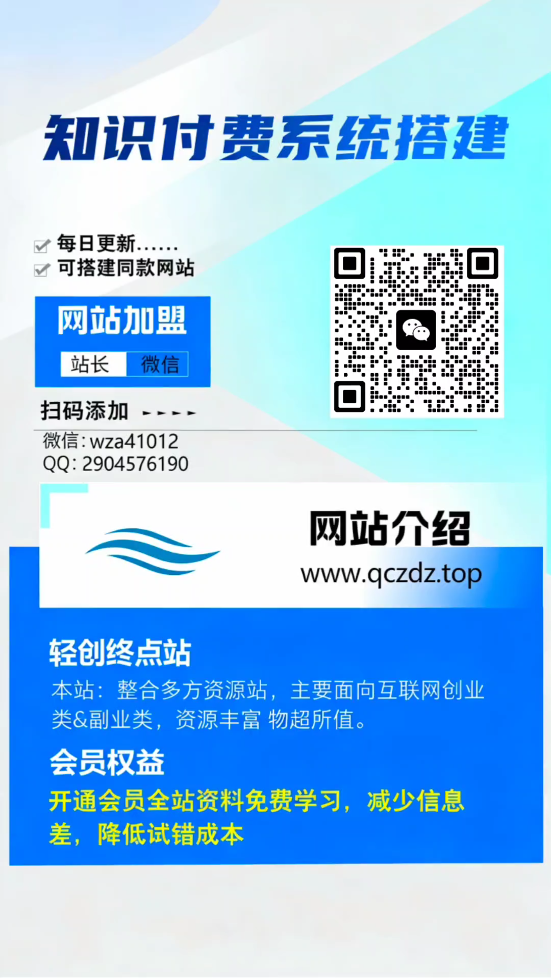 加盟无畏轻创,加盟搭建同款知识付费资源网站,实现长期稳定被动收入~